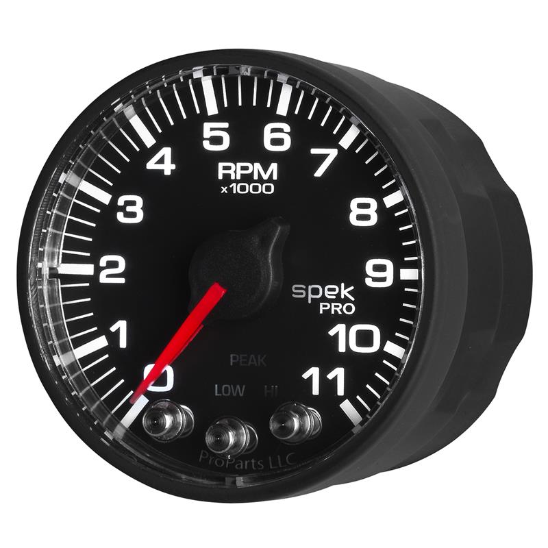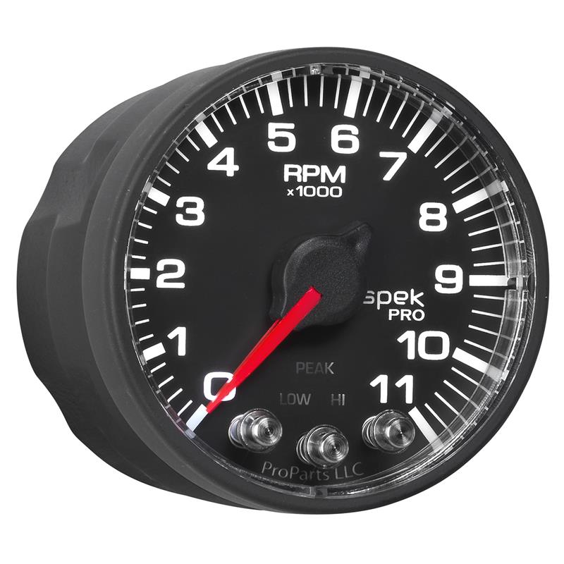 Autometer Spek-Pro Gauge Tach 2 1/16in 11K Rpm W/ Shift Light & Peak Mem - Blk/Blk